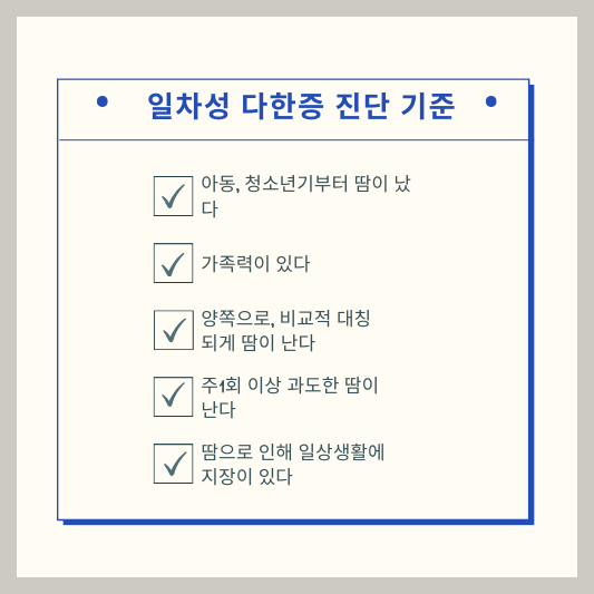 다한증은 1차성 다한증과 2 차성 다한증이 있습니다.