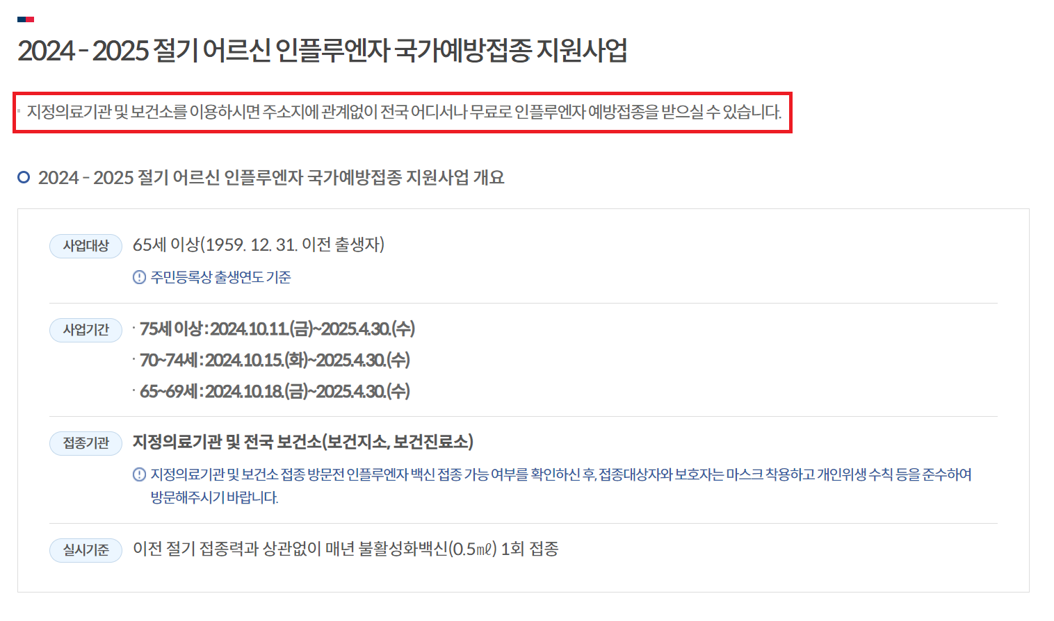 오늘부터 65세 이상을 대상으로 무료 예방접종이 시작된다고 하니 참고하시기 바랍니다.